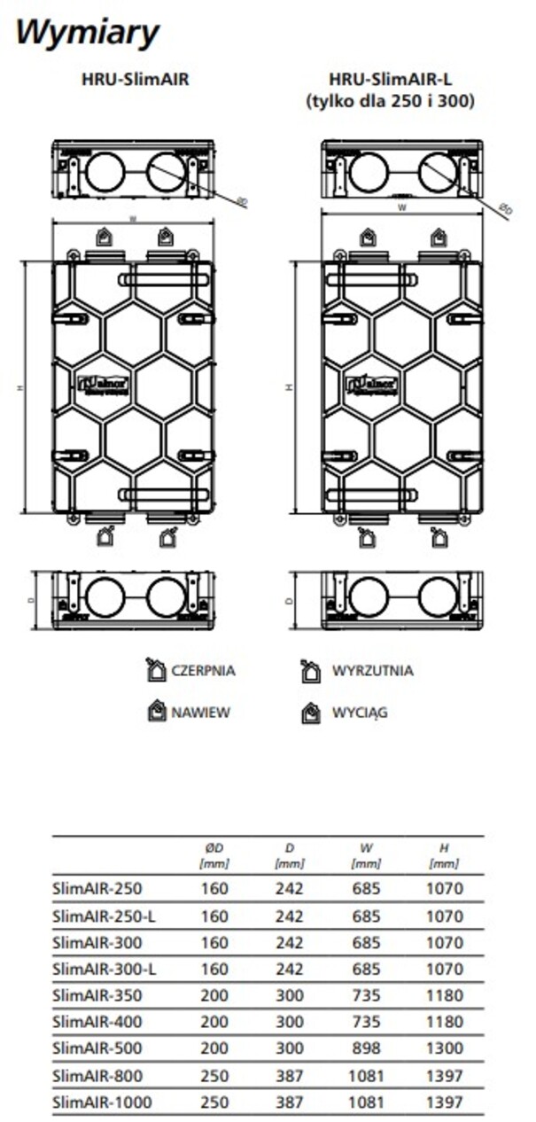 dostępność wersji lewostronnej (SlimAIR-250-L, SlimAIR-300-L)