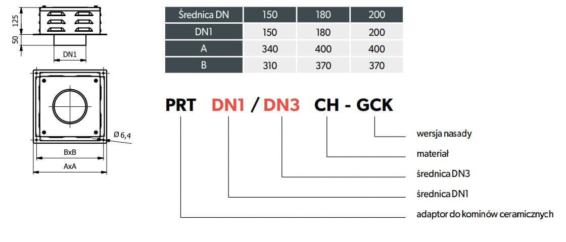 Podstawa wciskana PRTD to precyzyjnie wykonany element montażowy przeznaczony do współpracy generatora ciągu kominowego z wkładem ceramicznym.