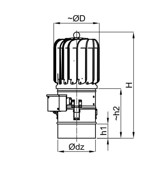 Montowany na wylotach kominów wentylacyjnych o działaniu grawitacyjnym .