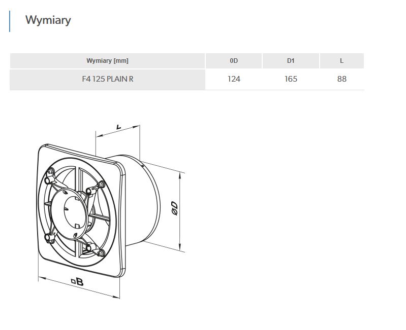 Anemostat dekoracyjny nawiewno-wywiewny, z tłumikiem regulacyjnym R 125 F4 oraz płaskim białym panelem przednim.