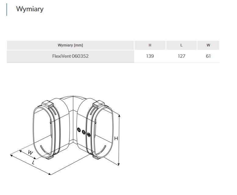 ZastosowanieŁączenie kanałów 52 mm pod kątem 90° w pionie. Dzięki zastosowaniu uchwytów mocujących (dołączony do zestawu) pozwala na trwałe i szczelne połączenie ze sobą kanałów elastycznych 52 mm.