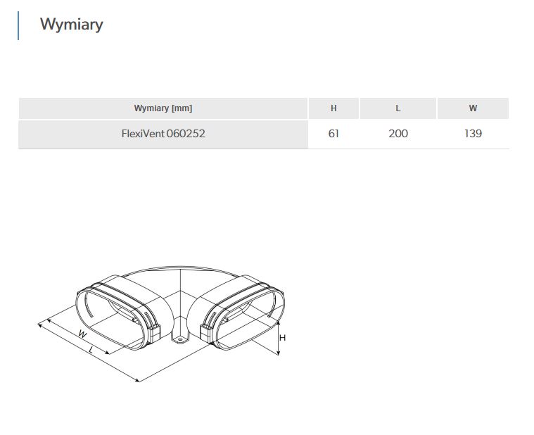 ZastosowanieŁączenie kanałów 52 mm pod kątem 90° w poziomie. Dzięki zastosowaniu uchwytów mocujących (dołączony do zestawu) pozwala na trwałe i szczelne połączenie ze sobą kanałów elastycznych 52 mm.