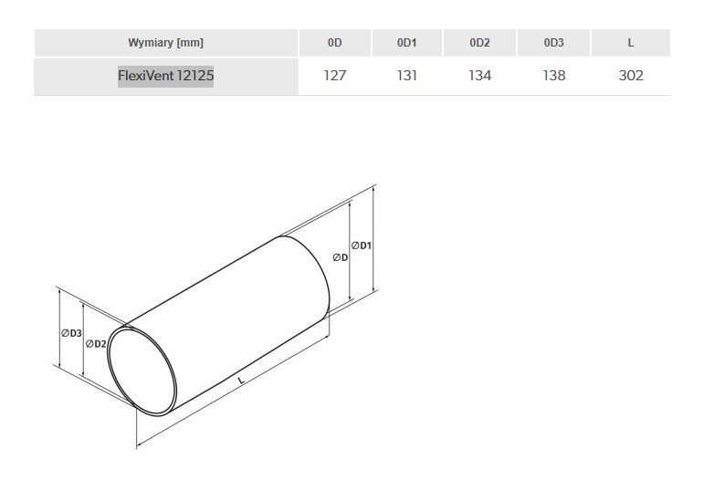 ZastosowanieDo przedłużenia króćca Ø125 mm skrzynek rozprężnych FlexiVent 0812125/75X2 oraz FlexiVent 0812125/75X3.