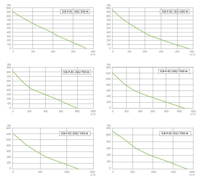 - Dzięki wysokiemu sprężowi, wentylator może pracować na długich odcinkach instalacji przy niskim poziomie hałasu.