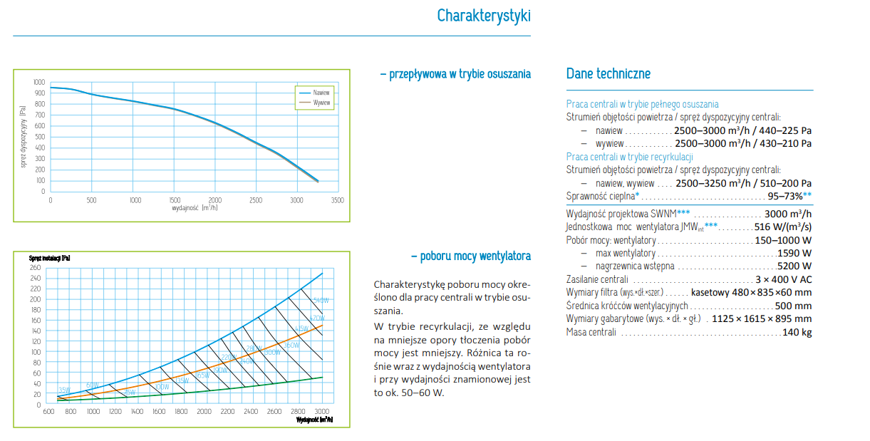 - możliwość płynnej, niezależnej regulacji wydajności nawiewu i wywiewu.