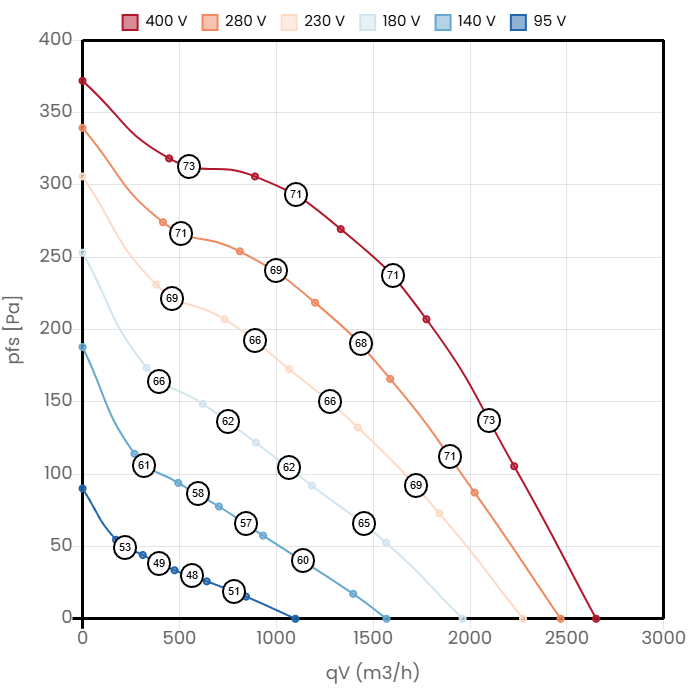 Napęd wentylatora stanowi silnik z wirującą obudową o regulowanej napięciowo prędkości obrotowej, wykonany w klasie szczelności IP44.