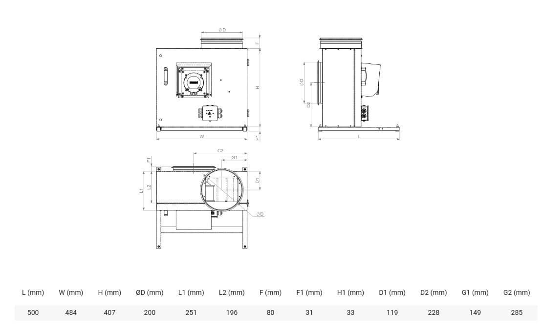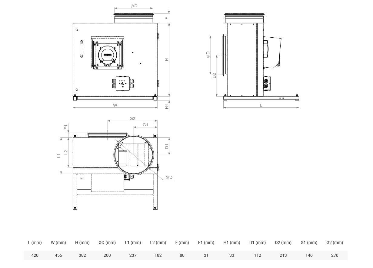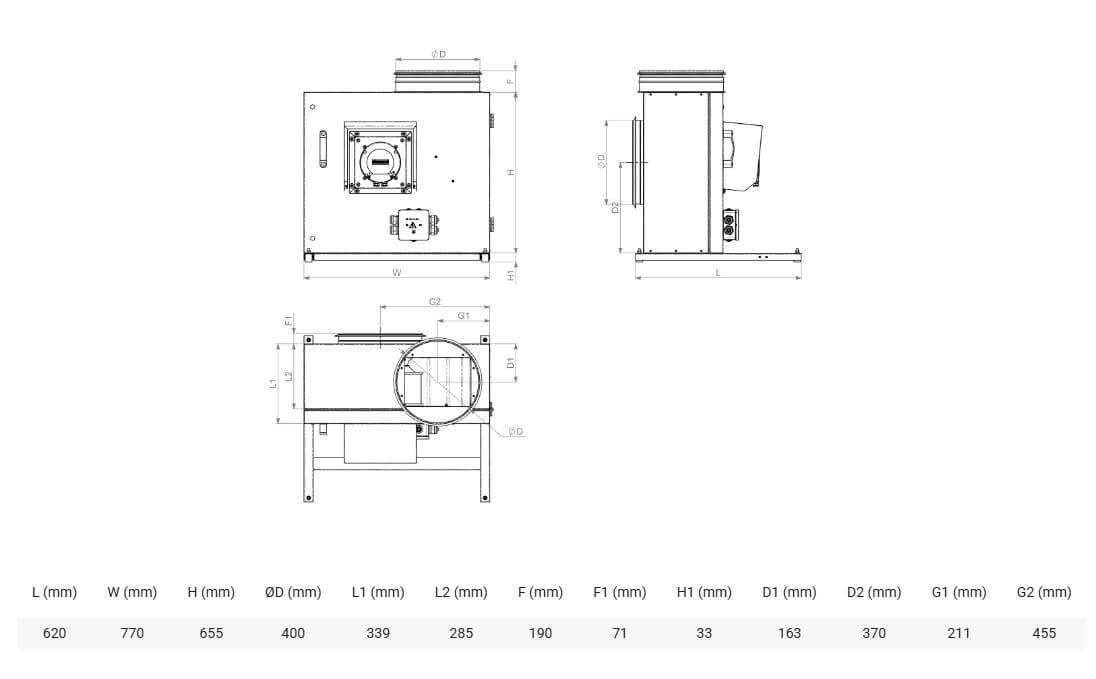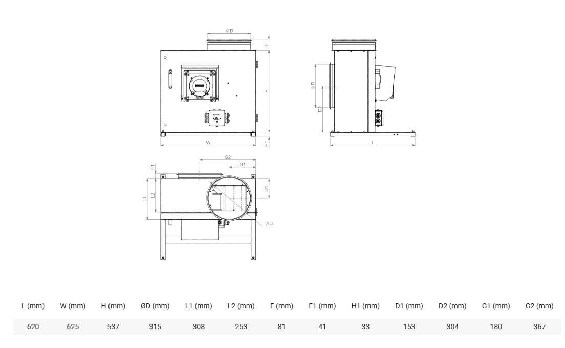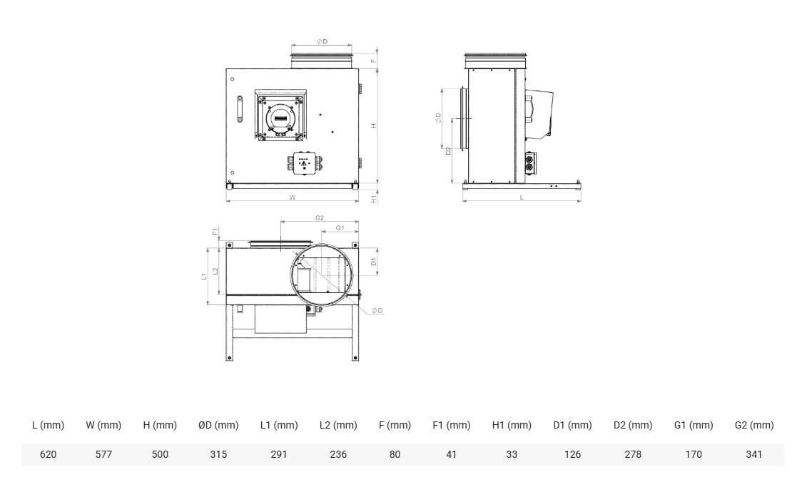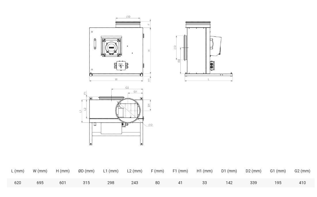KF-T120 F 280 EC | 2,6 kW | 4 | 400 | 50 | 120 | -40 | 61 |
