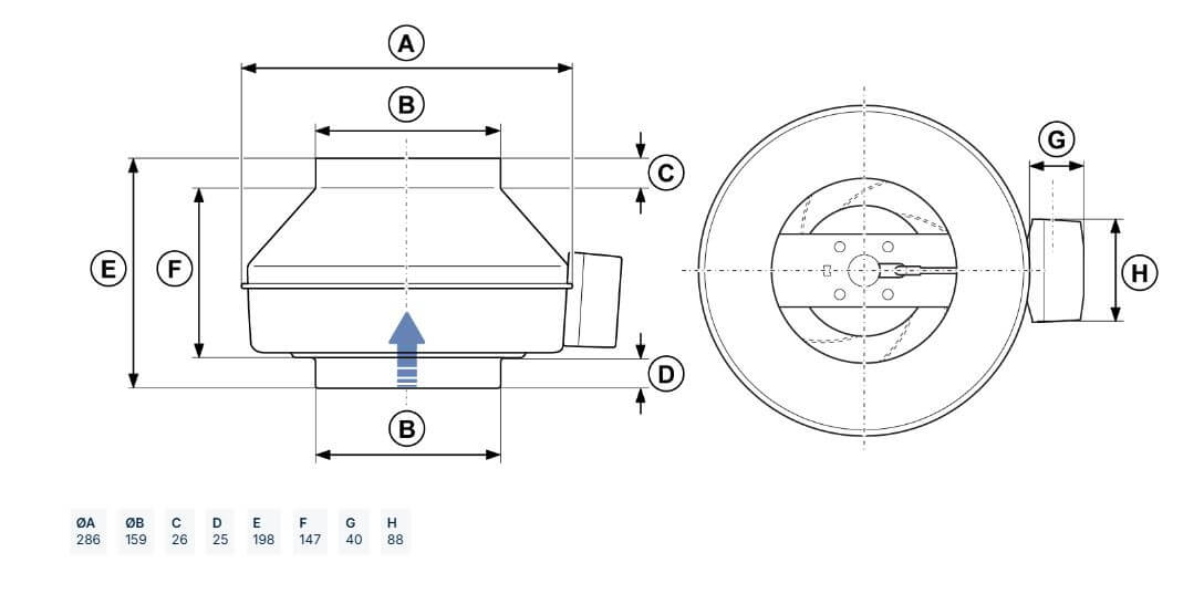 | K 160 EC sileo | 616 | 84 | 0,744 | 3 209 | 230 | 50; 60 | 55 | 44 | B | IP54 | 3,3 | 160 |