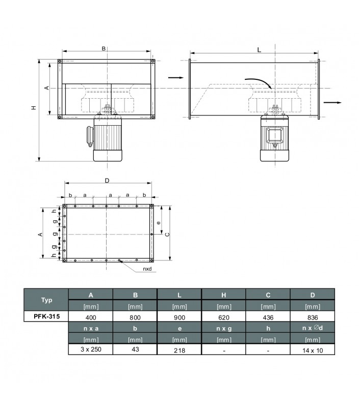 PFK to przemysłowe wentylatory kanałowe dedykowane do kanałów prostokątnych. Wentylatory serii PFK zostały stworzone z myślą o instalacjach, w których jest wymagana duża wydajność i cicha praca wentylatora.