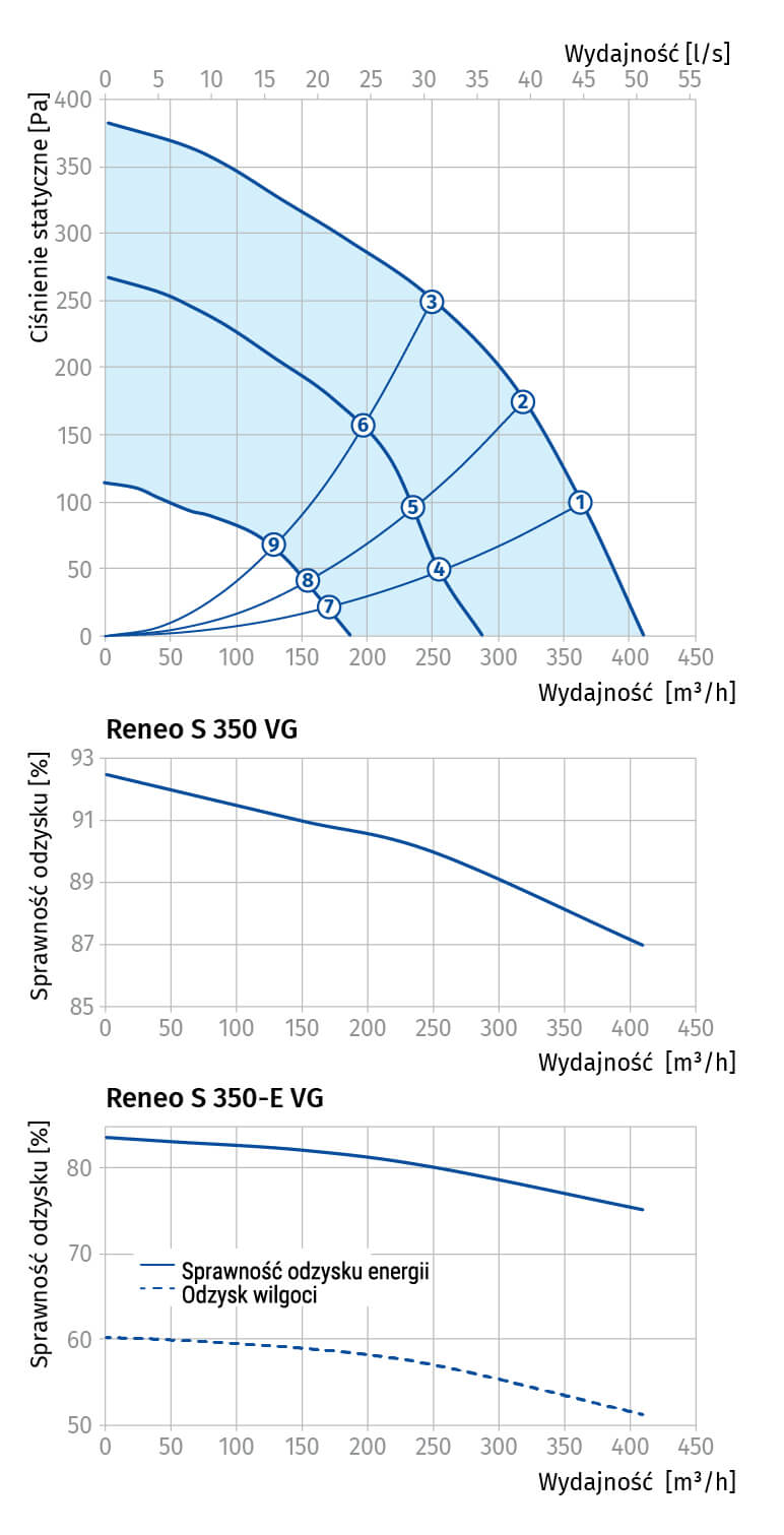 Seria Reneo S/SE...-E VG jest wyposażona w entalpiczny przeciwprądowy wymiennik ciepła do odzysku ciepła i wilgoci.