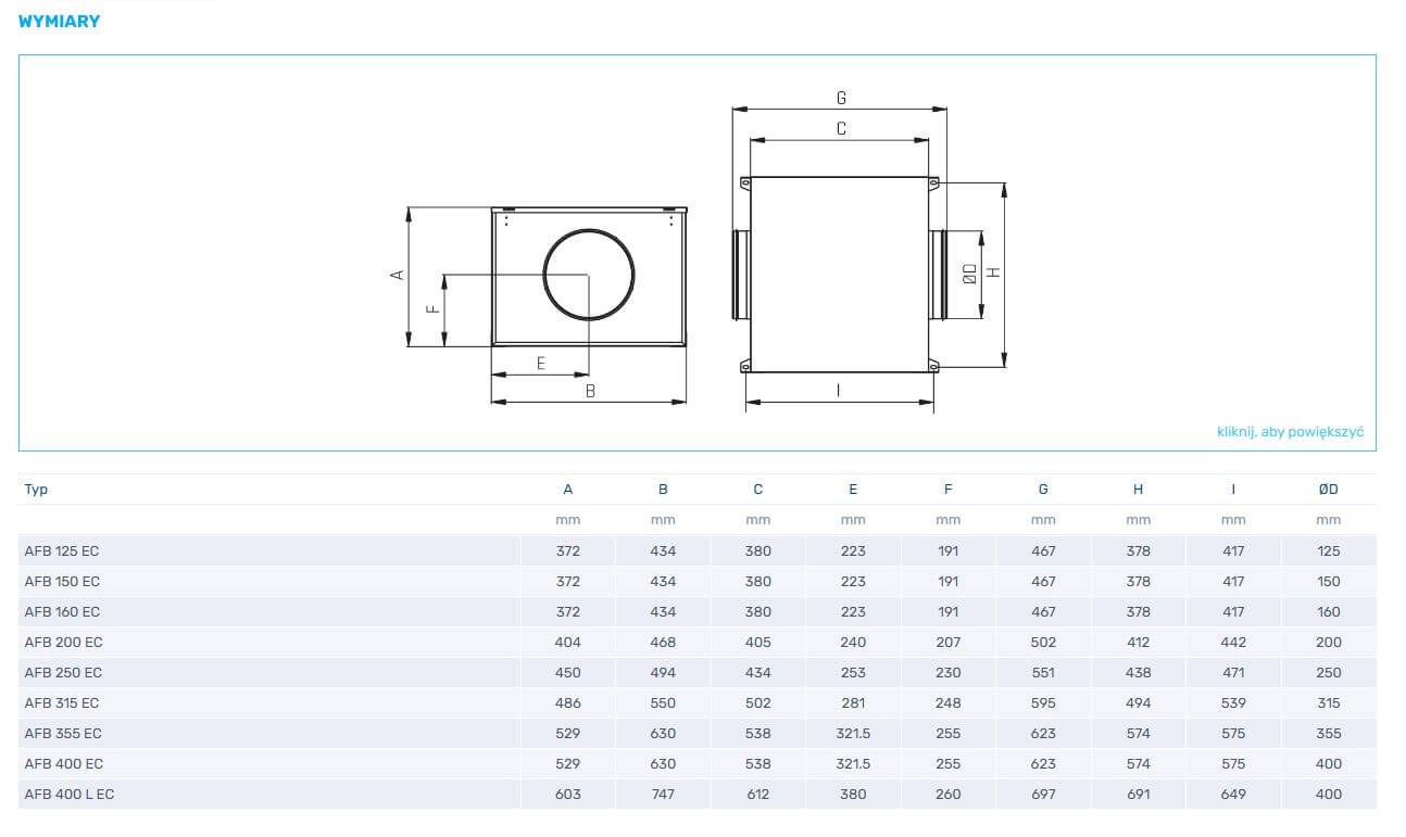 - wirnik z galwanizowanej blachy stalowej, z łopatkami pochylonymi do przodu,