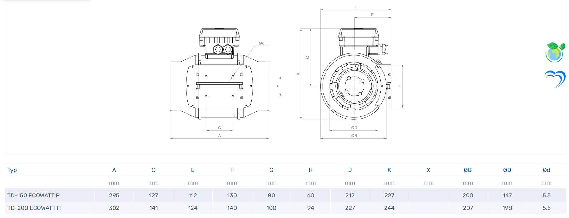 Wentylator kanałowy TD ECOWATT P