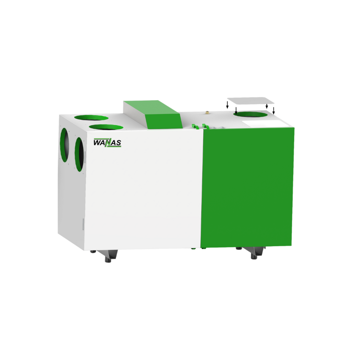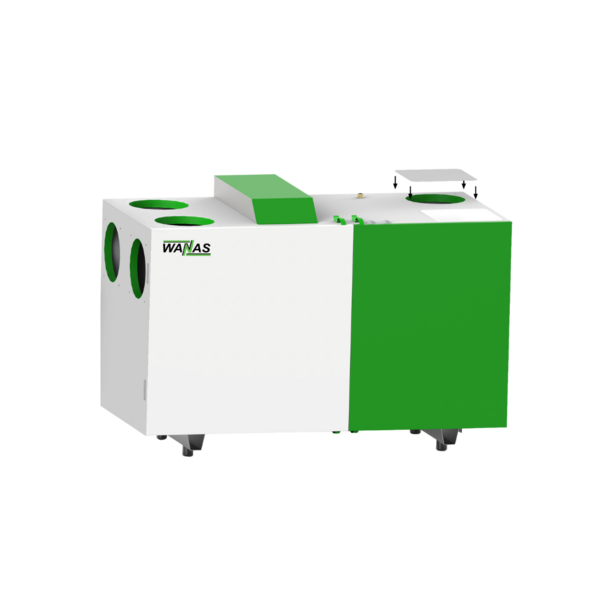 Rekuperator WANAS COMBO V/H to nowoczesna centrala wentylacyjna, która integruje cztery funkcje w jednym urządzeniu — wentylację, nawilżanie, grzanie oraz chłodzenie powietrza.